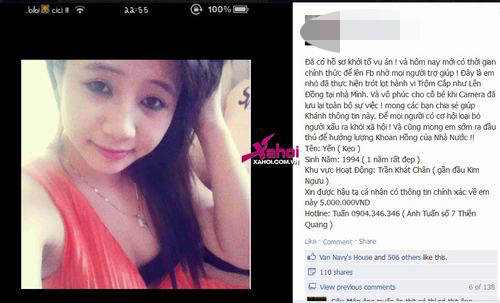 Trình vụ việc lên Công an phường nơi anh đang tạm trú, mới đây nhất, anh còn đăng tải thông tin kèm hình ảnh kẻ cắp trên trang mạng cá nhân nhằm tìm kiếm địa chỉ nhà cô.