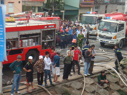 Đại tá Nguyễn Văn Sơn-Trưởng pḥng Cảnh sát PCCC Hà Nội cho biết: “Đă huy động hơn 10 xe cứu hỏa đến hiện trường để chữa cháy" (có cả xe cấp nước thùng téc chở nước đến).