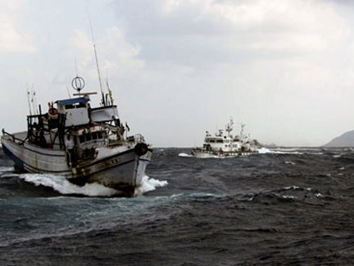 Tàu Lực lượng bảo vệ bờ biển Nhật Bản đuổi theo một tàu cá Đài Loan ở