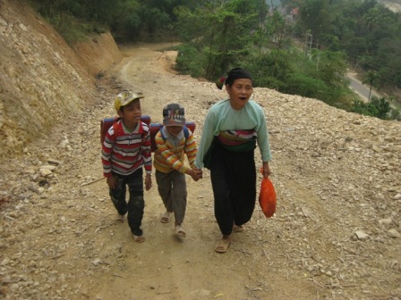 Ba năm qua, buổi sáng khi con gà rừng còn chưa cất tiếng gáy, bà Phạm Thị Mu (60 tuổi, dân tộc Mường) ở bản Nán, xã Thiết Ống, huyện Bá Thước (Thanh Hóa) đã lục đục trở dậy nắm cơm rồi đi bộ đưa 2 cháu mồ côi vượt đường rừng dài 6km để đến trường.