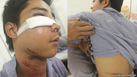 VietnamNet trích lời bác sỹ điều trị của ông Hoàng nói bệnh nhân "nhập viện trong t́nh trạng bị nhiều vết thương ở vùng mặt, cổ và lưng. Đặc biệt, phía g̣ má bên trái bị găy xương, mất máu rất nhiều."