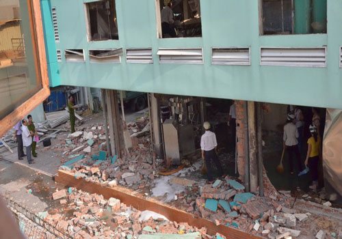 đổ sập, bị thương, công nhân, công ty, nổ lớn, vỡ kính, xă hội