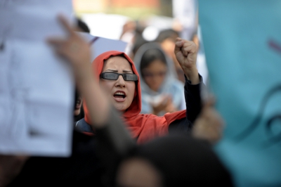 Phụ nữ Afghanistan biểu tình ngày 24 tháng 9, 2012 chống bạo hành gia đình và ngoại tình của đàn ông nước này. (Hình: ROBERTO SCHMIDT/AFP/Getty Images)