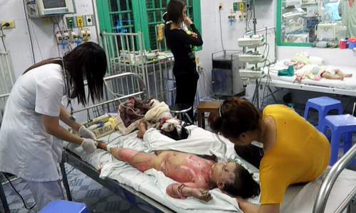 Bé Trần Thị Huyền bị bỏng khắp người, đang trong tình trạng nguy kịch