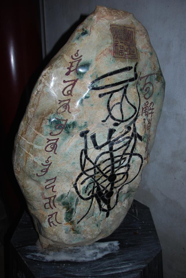 Hình ảnh dưới đây là hòn đá (một ảnh mặt trước, một ảnh mặt sau), được cho là một đạo bùa trấn yểm hiện đang đặt tại Đền Hùng, tỉnh Phú Thọ. Nhiều khách hành hương về Đất Tổ đã rất hoang mang lo lắng về hai đạo bùa này. Họ cho rằng đây là đạo bùa do người Tàu trấn yểm nhằm triệt hạ long mạch của Đất Tổ và qua đó triệt hạ cả dân tộc ta.