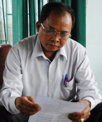 Ông Sanh đọc đơn tố cáo của người dân.