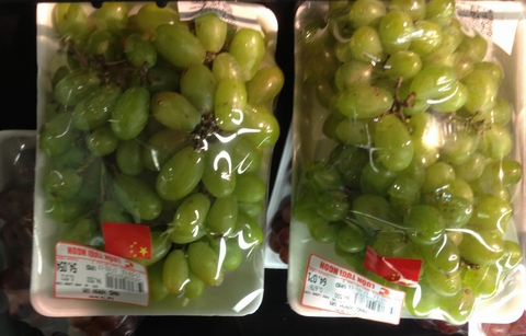 | Nho bán tại siêu thị Big C the Garden (Mỹ Đình, Hà Nội) bên ngoài nhãn in made in Vietnam, nhưng bên trong lại dán cờ Trung Quốc |