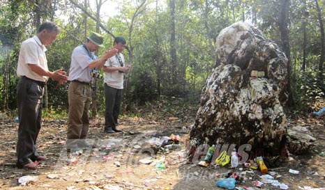 | Tiền bị xé làm đôi khi cúng "thần đá" | Ông Lù Trọng Đại nói thêm: “Không chỉ dân Việt Nam, mà cả người bên Trung Quốc cũng đến đây thắp hương vái lạy thần đá trắng. Không chỉ ngày lễ, mà ngày thường thỉnh thoảng họ cũng đem lễ vật đến cầu xin sức khỏe, bổng lộc và quan chức, vì tin rằng thần rất linh thiêng.