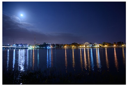 Trong 1 đêm trăng thanh, đứng ở bãi cỏ bờ bắc sông Hương nhìn qua khu phố Tây đường Lê Lợi