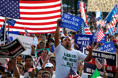 Giới đấu tranh đòi hỏi cải tổ luật di trú tụ họp tại Los Angeles cuối tháng Chín năm 2012 để bày tỏ quan điểm. (Hình: Getty Images)
