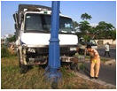 Xe tải nổ lốp, húc tung dải phân cách, suýt lao xuống sông