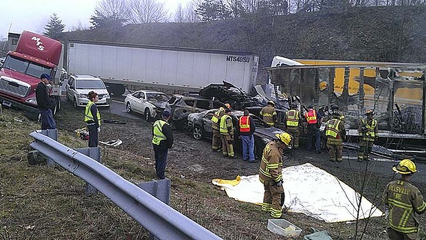 Người phát ngôn Sở giao thông vận tải bang Corinne Geller cho hay, trung tâm của vụ tai nạn là vụ đụng độ của 8 chiếc xe. Một số xe đã bốc cháy ngay sau khi đụng nhau.