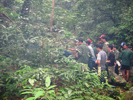 Lực lượng chức năng tỉnh Quảng Trị khám nghiệm vị trí chôn các thi thể (Ảnh: BĐBP Quảng Trị cung cấp)