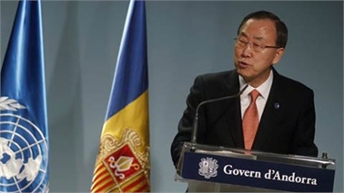 Ông Ban Ki-moon phát biểu tại cuộc họp báo ở Andorra (Ảnh: Reuters)
