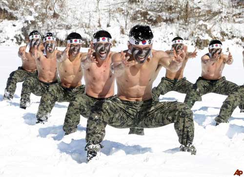 Lực lượng đặc biệt Hàn Quốc thể hiện sức mạnh trong điều kiện thời tiết khắc nghiệt. Ảnh AP.