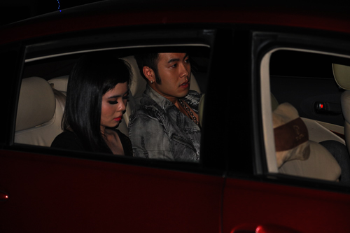 Arika Phan và bạn gái đi chung xe đến sân khấu ca nhạc nơi nam ca sĩ biểu diễn.