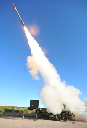 Một tên lửa Patriot PAC-3 trong lần phóng thử thành công năm 2008 tại Nhật Bản. Ảnh: Bộ Quốc pḥng Nhật.