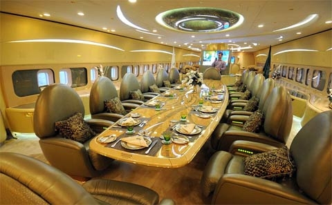 Máy bay của giới siêu giàu thường được thiết kế theo yêu cầu của riêng họ, với những căn phòng tươm tất, những bồn tắm bằng đá cẩm thạch, phòng hòa nhạc và cả ngai vàng.