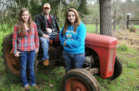 Hai cô bé bên cạnh người cha và chiếc máy cày nặng 1,4 tấn - Ảnh: examiner.com