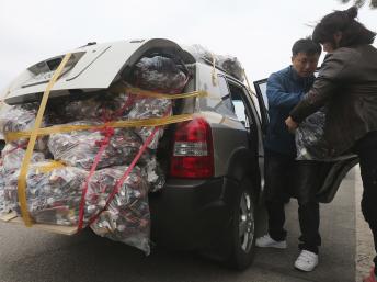Chuyên chở các sản phẩm sản xuất từ khu công nghiệp Kaesong, Bắc Triều Tiên ngày 08/04/2013. REUTERS/Lim Byong-sik/Yonhap