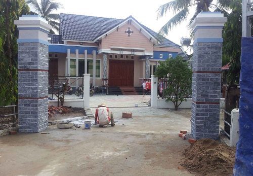 Sau khi người dân tố cáo, ông Lư cho thợ xây lùi 2 trụ cổng vào đầu bên trong cầu.