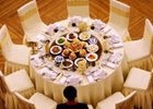 Một nhân viên chuẩn bị cho một buổi tiệc thịnh soạn ở Bắc Kinh - Ảnh: AFP.