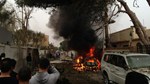 Khói đen và lửa bốc lên từ chiếc xe bom.