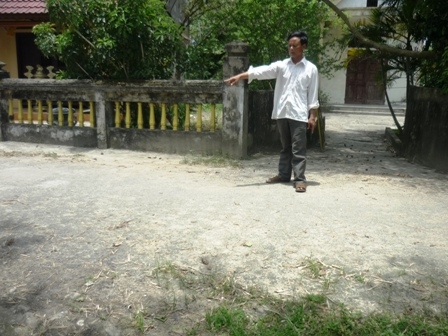 Anh Tiệp chỉ vào hiện trường nơi trước đó con gái bị đánh ghen, cắt tóc, xé áo.