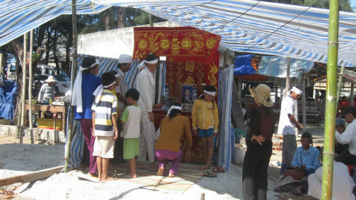 Nhiều người rơi lệ khi chứng kiến quan tài và hương án viếng anh nằm trong chiếc lều bạt che vội cạnh bờ biển. Gió giật từng hồi như muốn nhấc bổng căn lều. Hàng trăm người dân tránh nắng dưới bóng dương liễu để viếng và tiễn đưa người vắn số.