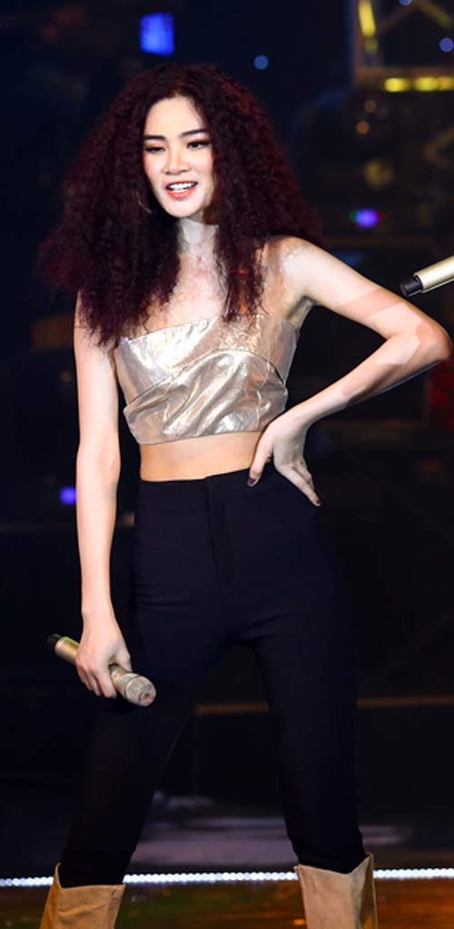 Tối qua, cặp đôi của cô và Nathan Lee biểu diễn đầy tự tin và hết mình trên sân khấu như tiên đoán được “số phận”. Vốn có lợi thế ngoại hình, nữ người mẫu trung thành phong cách sexy, gợi cảm từ đầu chương trình đến giờ. Do đó, khi biểu diễn ca khúc Xinh, người đẹp làm tóc xù, diện quần legging nhưng cô khá mạo hiểm khi chỉ mặc chiếc áo quây có khóa sau lưng lên sân khấu. Trong quá trình biểu diễn, do tập trung hát và di chuyển nhiều, chiếc khóa tuột dài để lộ phần nội y. Tuy vậy, người mẫu sinh năm 1988 rất bình tĩnh hoàn thành phần thi ca khúc hit của Nathan Lee.