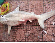 Con cá mập dài gần 2m, nặng khoảng 60 kg mắc lưới ngư dân cách bãi tắm của khách du lịch ở Bình Định chỉ chừng 500 m.
