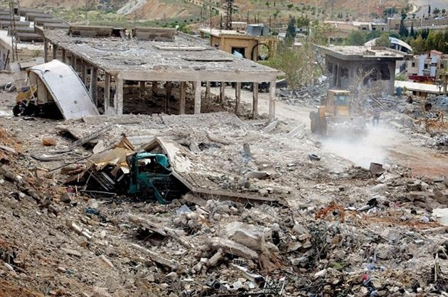 Cảnh hoang tàn, đổ nát thương tâm sau khi tên lửa Isarael tấn công vào Syria rạng sáng 5/5 vừa qua.