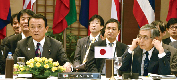 ASEAN, Nhật, Trung Quốc và Hàn Quốc đă thoả thuận tăng cường hợp tác tài chính vùng, mặc dù vắng mặt bộ trưởng Tài chính Trung Quốc và Hàn Quốc trong cuộc họp ngày 3.4 tại New Delhi. Trong khi đó vấn đề Biển Đông vẫn không có dấu hiệu ǵ tốt hơn giữa ASEAN và Trung Quốc. Ảnh: japantimes.co.jp