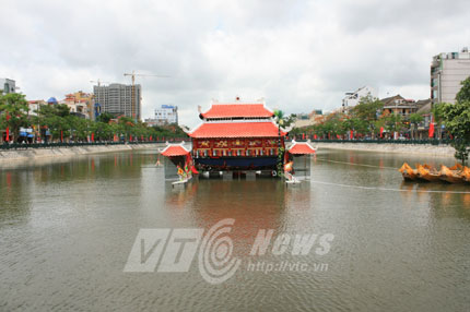 Sân khấu múa rối nước trên hồ Tam Bạc - Ảnh Minh Khang