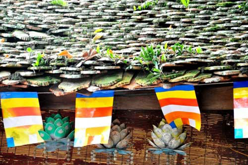 “Hễ trời mưa xuống là nước dột trực tiếp xuống các pho tượng, nước lênh láng bàn thờ Tổ, chúng tôi phải đội nón, mặc áo mưa để tránh cho các pho tượng bị bong tróc”, bác Nguyễn Văn Chung, người trông nom nhà chùa cho biết.