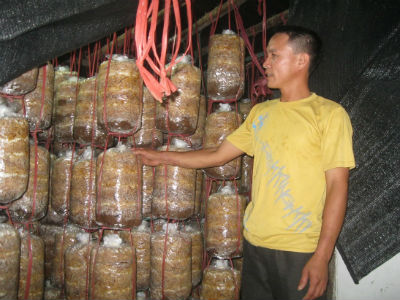 Đại phải gác dự định làm ăn sang một bên, vợ chồng cùng đi phụ hồ khắp nơi để kiếm kế sinh nhai. Đầu năm 2012, ngay khi lấy được b́a đỏ đất, anh đă mang thế chấp ngân hàng vay 50 triệu về làm vốn để mở cơ sở trồng nấm ṣ.
