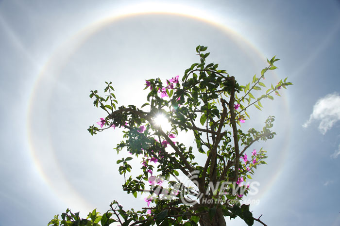 Quầng sáng rộng dần với tâm là mặt tri. Quan sát tận mắt, có đến 4-5 vệt cầu sáng giao nhau xung quanh quầng sáng quanh mặt trời. Hiện tượng kéo dài đến tận lúc 12h 30 hôm nay.