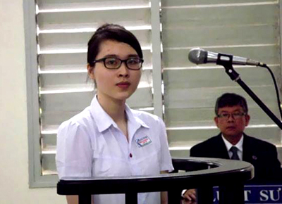 Nguyễn Phương Uyên tại ṭa án Long An. (H́nh: Dân Việt)