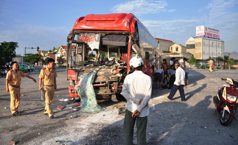 - Đang chạy nhanh, bất ngờ gặp xe tải sang đường, lái xe giường nằm đă không xử lư kịp lao thẳng vào xe tải. Hàng chục hành khách ngồi trên chiếc xe giường nằm được một phen hoảng hồn.