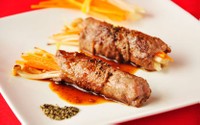 Thịt sau khi chiên xong bạn để lên đĩa có lót giấy thấm dầu để vài phút cho ráo dầu rồi rắc chút tiêu là xong. Nếu bạn không thích mùi vị “nguyên thủy” của thịt bò thì ướp thịt với xốt thịt nướng trước khi cuộn sẽ là một gợi ý hay dành cho bạn.
