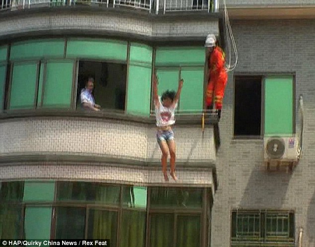 Rất may mắn cô gái này đã được cứu thoát bởi...nhân viên cứu hỏa.
