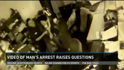 Băng video cho thấy ông Bửu bị một cảnh sát viên Denver kẹp cổ. (Hình chụp qua TV)