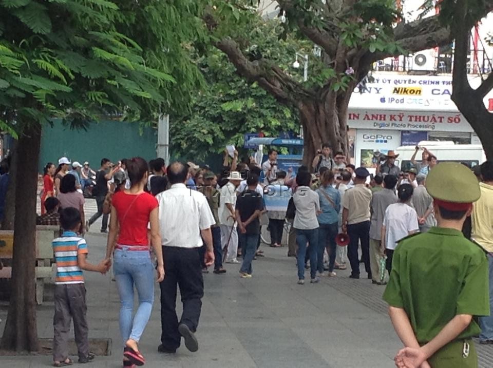 8h30 tình hình yên tĩnh, công an xuất hiện nhiều, không có ai cầm biểu ngữ hay biểu tình