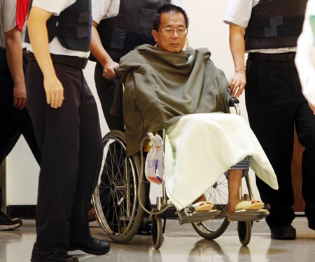 Cựu "Tổng thống" Đài Loan Trần Thủy Biển trên xe lăn đang mắc chứng trầm cảm nặng.