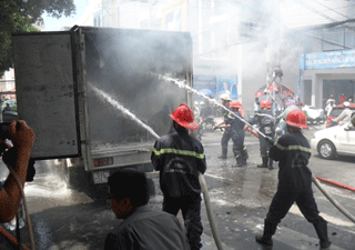 Theo anh Nguyễn Văn Hận (31 tuổi, quê Vĩnh Long, lái xe tải trên), khi đang điều khiển xe giao hàng đến khu vực này, bỗng phát hiện thùng xe bốc cháy khi nh́n qua kiếng chiếu hậu, nên vội tung cửa chạy ra ngoài.