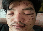 Anh Hoàng Văn Trung bị bỏng toàn thân và có nguy cơ mù cả hai mắt.
