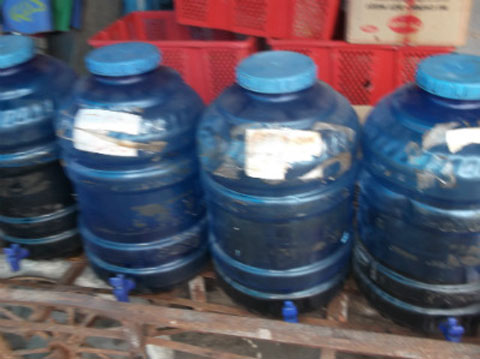 Nước mắm không nhăn mác đă pha được đựng trong các b́nh lớn