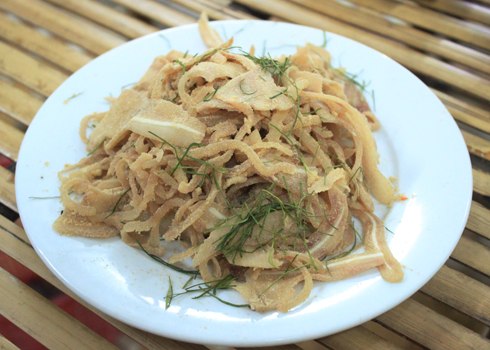 Vị bùi của thính kết hợp với cái béo giòn của tai heo rất lạ miệng. Ảnh: K.H.
