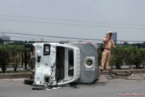 Trao đổi với báo, lănh đạo Đội CSGT số 5 (Công an Hà Nội) cho biết, xe tải của công an phường Phúc Đồng đang đi làm nhiệm vụ th́ gặp nạn, làm một chiến sĩ bị thương.