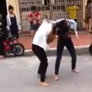 Default Xuất hiện thêm clip nữ sinh cấp 2 đánh nhau giữa đường